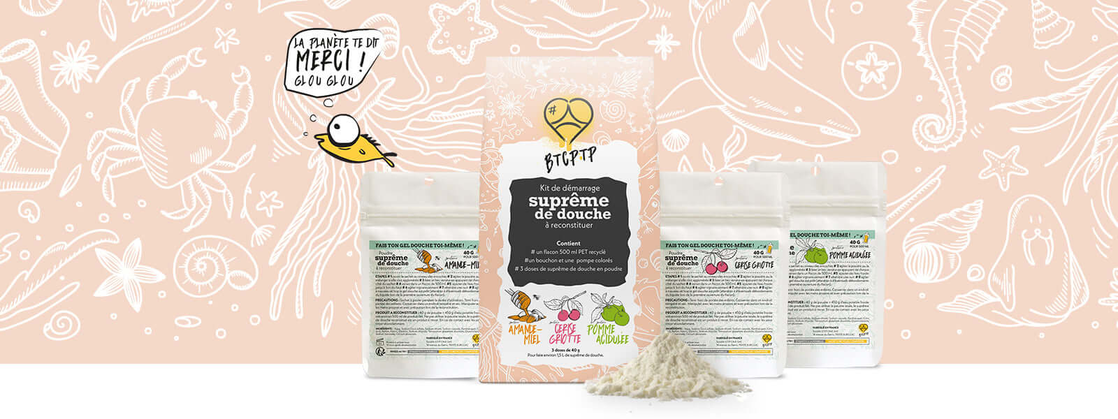 Gamme de produits innovants pour réduire nos déchets plastiques : première innovation le gel douche en poudre!
