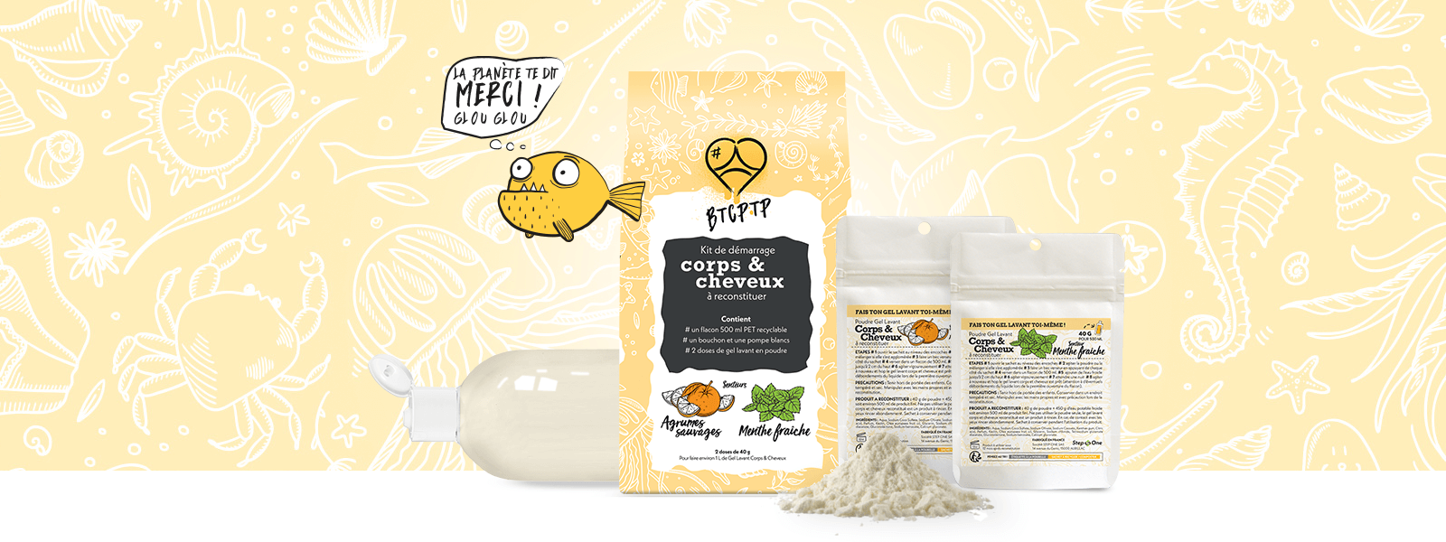 Coffret cadeau 2 en 1 Kit de démarrage: gel lavant Corps & Cheveux Agrumes sauvages/Menthe Fraîche - Zéro déchet